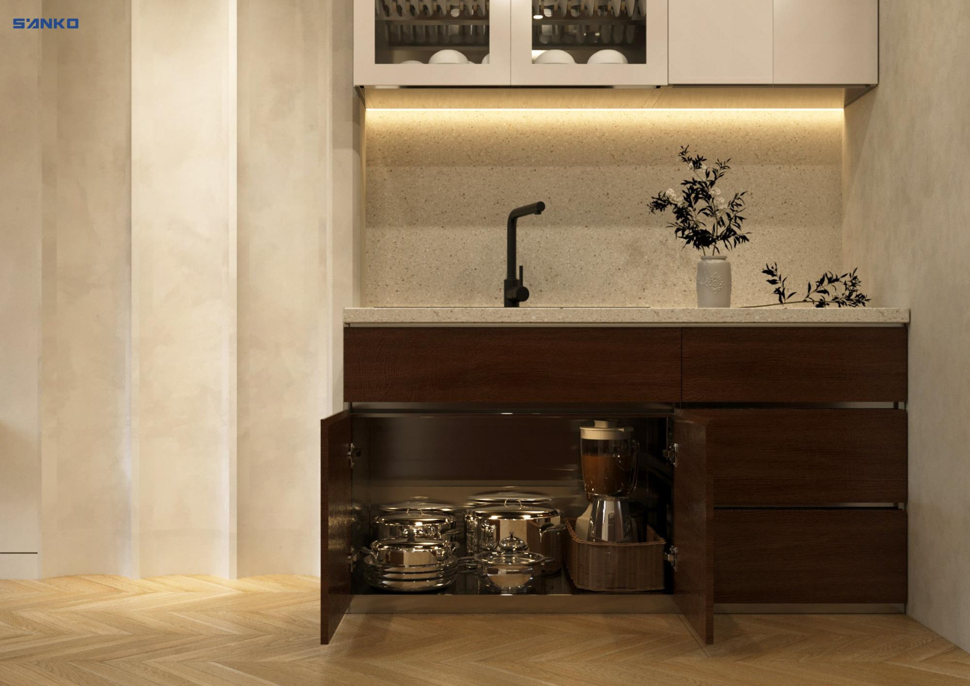 Những mẫu tủ bếp dành cho nhà bếp nhỏ đẹp đơn giản được khách hàng ưa chuộng tại Sanko